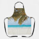 Scène arrière - plan de plage tropicale avec palmier incliné, sable et océan bleu aqua. YThis est fait à partir d'une photographie artistiquement réalisée pour ressembler plus à une peinture.