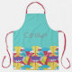 Ce tablier personnalisé possède un motif de frise inspiré du design Art Déco, avec ses formes pyramidales, ses ventilateurs solaires et ses vagues bleues stylisées, sur un arrière - plan turquoise. Vous pouvez le personnaliser avec votre nom en écriture de script sur le devant. Le motif est unique et dessiné à la main.