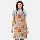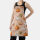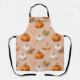 Un tablier motif automne sans soudure avec des citrouilles orange et blanc dessinés à la main et entouré de feuilles d'automne dans des tons chauds brun et orange défraîchi. Placé contre un arrière - plan de pêche pâle et doux aux pois blancs délicats, ce design allie charme rustique et douceur, atmosphère saisonnière.