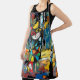 Un chat fantaisiste aux allures de vitraux géométriques se dresse dans une forêt de bouleaux très animée. L'arrière - plan présente un mélange coloré de feuilles d'automne et de tons bleus et jaunes. Photoshop Art numérique