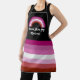 Tablier féminin avec une image d'un rouge à lèvres drapeau de la fierté lesbienne et un arc-en-ciel ; design rose, blanc et orange sur un arrière - plan noir, avec un modèle texte personnalisable pour votre propre nom ou message