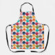 Ce tablier a un design moderne du milieu du siècle de demi-cercles rayés et de demi-cercles solides assemblés sur un champ de blanc.