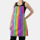 Ce tablier a un design de bandes printanières en rose, jaune, orange, vert, bleu et violet.
