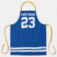 Tablier BBBQ bleu personnalisé avec numéro de maillot. Tabliers de cuisine personnalisés dans n'importe quelle couleur pour les hommes et les femmes. Design de rayures de sport cool. Ajoutez votre propre nom ou devis. Créez votre propre cadeau unique de fête d'anniversaire pour entraîneur, footballeur, maman, papa, père, mère, femme, mari, ami, grand-père, enfants, patron, collègue, cuisinier, cuisinier, collègue etc. Disponible en petite, moyenne et grande taille. Idéal aussi pour la fête du dîner, la boulangerie, l'artisanat etc.