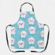 L'image est un motif mignon avec des chiots Bichon Frise souriants sur un arrière - plan bleu avec des accents d'os et d'empreintes de pattes ludiques.
