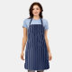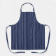 Un tablier bleu marine avec un élégant motif à rayures blanches. Les fines bandes verticales sont espacées de façon égale.