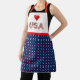 Cette impression sur tout le tablier présente un design patriotique. Un imprimé étoile rouge et blanc est sur un arrière - plan bleu solide et le bit blanc a un coeur rouge et le drapeau inspiré des États-Unis. Portez ce tablier à vos 4 juillet fêtes. C'est parfait pour les réunions de vacances.