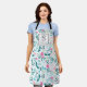 Tablier Blue and Pink Floral Pattern with Monogram & Name