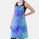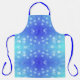 Blue apron with white polka dots, displayed flat and worn by a smiling man in a matching blue shirt. Apron has a cheerful, playful design.