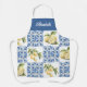 Enjoy working in your kitchen or studio in style with this apron decorated with a blue tile French country lemon pattern. Personalize with your name or that of a loved one.