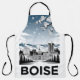 Capture the calm charm of Boise, Idaho with this striking black and white woodcut-style skyline Aprons Set against the snow-capped Boise Foothills, the design features the iconic Idaho State Capitol alongside modern buildings, rendered with crisp contrast and clean lines. A delicate cherry blossom branch dusted with snow adds a unique seasonal touch, while soft gradation creates a peaceful winter atmosphere. , this Boise skyline Aprons makes a thoughtful gift for locals, visitors, and fans of minimalist city and mountain-inspired art.