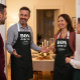 L'apron de langue française avec les mots Bon Appetit et l'expression de bienvenue personnalisable de votre choix.