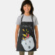 Un tablier d’Halloween avec un seau fantôme rempli de bonbons. Ce tablier amusant comprend les mots "Happy Halloween" qui peuvent être customisés. Les couleurs de l'tablier sont gris et blanc.