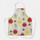 Stylish apron with a nature-inspired pattern of garlic, onions, violets, and tomatoes. Ideal for cooking, baking, and kitchen decor