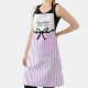 Il s'agit d'une cuisine mignonne à rayures violettes, boulangerie, salon tablier de nom d'entreprise avec un joli design d'arc noir. Vous pouvez customiser le texte avec votre nom.