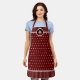 © 2020 Socialite Designs Inc. tablier lunaire avec un arrière - plan à pois rouge et blanc, bande rouge sur hémisphère supérieur et inférieur, et un cupcake à fraise en cercle.