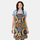 Ce tablier a une conception Bauhaus de différents groupes de cercles concentriques dans les couleurs des années 1970.