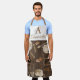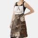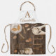 Ce charmant tablier sur mesure est décoré sur le thème du café et les buveurs de café sont assis ensemble sur une table en bois rustique. La partie inférieure est composée d'un arrière - plan en bois avec diverses images de style café. Les images sont imprimées dans un style aquarelle, chaleureux et rustique. Des pâtisseries avec couverts, bâtonnets de cannelle et haricots à café sont disposés sur la table. Un nom d'échantillon et une initiale monogramme sont imprimés en police beige sur la partie supérieure.