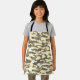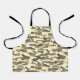 Suis un tablier accrocheur avec un motif camo dynamique composé de jaune clair et sépia foncé.