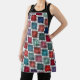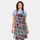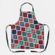 Ce tablier est décoré dans un style art déco de carrés, avec des angles superposés dans des tons rétro bleu et rose.