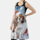Ce design festif reflète l'esprit joyeux de la période des fêtes, avec un adorable petit portant un chapeau de Père Noël. Le chien est niché dans un pays des merveilles hivernales, avec un bonhomme de neige, un sapin de Noël décoré et des cadeaux joliment emballés. Les flocons de neige tombent doucement, ajoutant une touche magique à la scène, tandis que les couleurs vives des décorations de vacances créent une atmosphère chaleureuse et joyeuse.