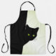 Sly chat noir aux yeux vert émeraude regarde de derrière le mur noir dans une pièce verte.