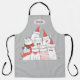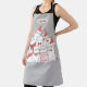 Whimsical Holiday arbore un tablier à thème de chats souriants dessinés à la main pour la saison de Noël à Père Noël casquettes, bow cravates et écharpes sur arrière - plan gris. L'ovale du texte central peut être utilisé pour personnaliser cet accessoire