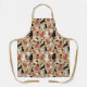 Apron dans une variété de chats mignons et stylisés dans diverses poses, couleurs et motifs ludiques - tabby, noir, blanc, et calico - ensemble contre un arrière - plan bronzé. Des feuillages épars et de minuscules coeurs ajoutent des accents ludiques au design.