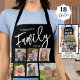 Créez un tablier photo couleur personnalisé en utilisant ce modèle de collage photo facile à télécharger avec 19 images de différentes formes et tailles et personnalisées avec un nom et FAMILY CHEF dans une typographie de script de calligraphie moderne. Choisissez les couleurs du texte et de l'arrière - plan (en blanc sur noir) dans EDIT et la couleur de la sangle sur la page de commande. ASSISTANCE : Pour obtenir de l'aide sur la modification ou la personnalisation de la conception, le changement de couleur, le redimensionnement, le transfert de la conception vers un autre produit ou si vous souhaitez coordonner des éléments, contactez le concepteur AVANT LA COMMANDE via l'onglet MESSAGE Conversation Zazzle ci-dessous ou envoyez un courriel à makeitaboutyoustore@gmail.com.