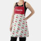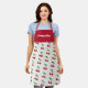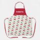 Un tablier avec un motif de cerises et ses feuilles verts, et, en bas, un texte personnalisable sur un arrière - plan rouge. Une bonne idée pour un cadeau à un amoureux des fruits sucrés ! Il peut être utilisé au travail, dans un jardin ou dans une cuisine quand vous faites des confitures artisanales !