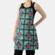 Cet tablier a un design art déco de carrés concentriques se chevauchant en turquoise et rose.