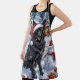 son design festif reflète l'esprit joyeux de la période des fêtes, avec un adorable petit portant un chapeau de Père Noël. Le chien est niché dans un pays des merveilles hivernales, avec un bonhomme de neige, un sapin de Noël décoré et des cadeaux joliment emballés. Les flocons de neige tombent doucement, ajoutant une touche magique à la scène, tandis que les couleurs vives des décorations de vacances créent une atmosphère chaleureuse et joyeuse.