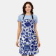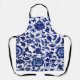 Tablier Chinois bleu marine foncé motif floral sur blanc