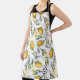 Tablier Citron, branches vertes : motif abstrait.