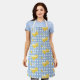Tablier Citron jaune rétro Chèque bleu ciel