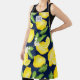 Ce tablier monogramme est doté d'un motif de citron botanique avec une bande marine et d'un carré pour le début au sommet.