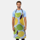 Coloré abstrait citron citron citron agrumes motif imprimer tablier et coordination des sangles couleur prune foncé.