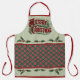 A country Christmas apron featuring a hand-drawn "Merry Christmas" and a classic, Christmas plaid in traditional red and green colors. Perfect for "Mrs. Claus" in the kitchen and also available in smaller sizes for "Santa's little helpers."
