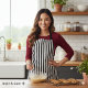 This apron features a classic white and black stripe pattern designed for dependable daily cooking. Its simple, timeless style blends easily with modern or traditional kitchens while offering comfort and practical coverage. Ideal for everyday meal prep, creative projects, or thoughtful gifting, it delivers a polished look that suits a wide range of personal tastes.