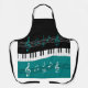 Tablier Clés et notes de piano Turquoise noir blanc