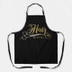 Coiffeur noir & or Nom du salon tablier noir. Caractéristiques du design Calligraphie ''Cheveux'' en or, paire de ciseaux de coiffure argent sur un arrière - plan noir. Personnalisez avec un nom ou un nom de salon.