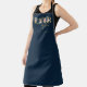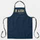 Coiffeuse personnalisée / nom coiffeur tablier bleu marine foncé avec logo de typographie florale rose et fausse feuille d'or.
