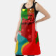 Ce tablier a un dessin de Noël d'un collage d'arbre de Noël, d'un ornement, d'un bas, d'un cadeau et d'un garçon en pain d'épices.