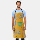 Tout sur l'impression design Baker's Apron. Le design est jaune avec des pois blancs, des articles de boulangerie comme un whisky, un rouleau à épingle, un bol et des cuillères de mesure. Merci à Creative Fabrica pour certains des éléments du design.