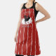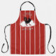 Tablier à rayures simples avec un coq et un arrière - plan de nuage ou de cercle en option. Les couleurs sont rouge, noir et blanc. Consultez l'éditeur avancé pour toutes les options. Également disponible en gris : https://www.zazzle.com/chefs_kitchen_rooster_striped_apron-256536594828708665
