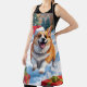 Un Corgi joyeux court à travers la scène hivernale enneigée, portant un casquette de Noël rouge festif. Ce design joyeux met en valeur les jambes courtes de la race, le manteau moelleux et la personnalité vivante tout en capturant la chaleur et le charme de la saison des fêtes. Un moment d'hiver plein de chaleur et d'esprit festif.