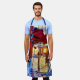 Cet tablier présente une image nautique du coucher du soleil à travers la bouée de sauvetage d'un voilier sur l'île de Lopez dans les îles San Juan dans l'État de Washington. La scène rouge, blues et nautique vous rappellera les couchers de soleil et la navigation, quelle que soit l'heure de la journée. Les cravates sur ce tablier sont en bleu.