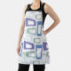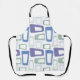 Ce tablier a une conception moderne du milieu du siècle de parallélogrammes répétés dans le bleu et le vert avec des parallélogrammes blancs sur le dessus. Comme ce design mais veulent des couleurs différentes ? Message-moi.