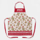 Un joli tablier d'équipage de cuisine de Noël décoré d'un motif de biscuits de pain d'épices. Personnalisez-le avec votre nom. Bordure de tablier a un motif de pois rouge et blanc avec ric rac. Fait un cadeau amusant pour Noël. Conçu pour vous par Blackberry Boulevard.