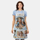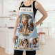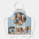 Tablier Custom Name 4 Photo Collage Elegant Blue Kitchen